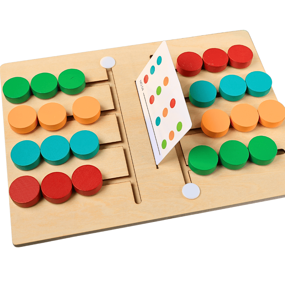 The noiiet 2 Player Colour Matching Game transforms pattern recognition into a playful, cooperative challenge. Two players race or work together to match colourful shapes in the slots, encouraging conversation, teamwork, and strategic thinking. This shared activity naturally improves colour recognition, memory and sorting skills without screens or passive play.
