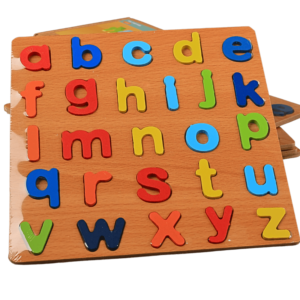 A wooden ABCD learning board that helps children recognize letters, build phonics awareness, and develop early reading skills through hands on play.
