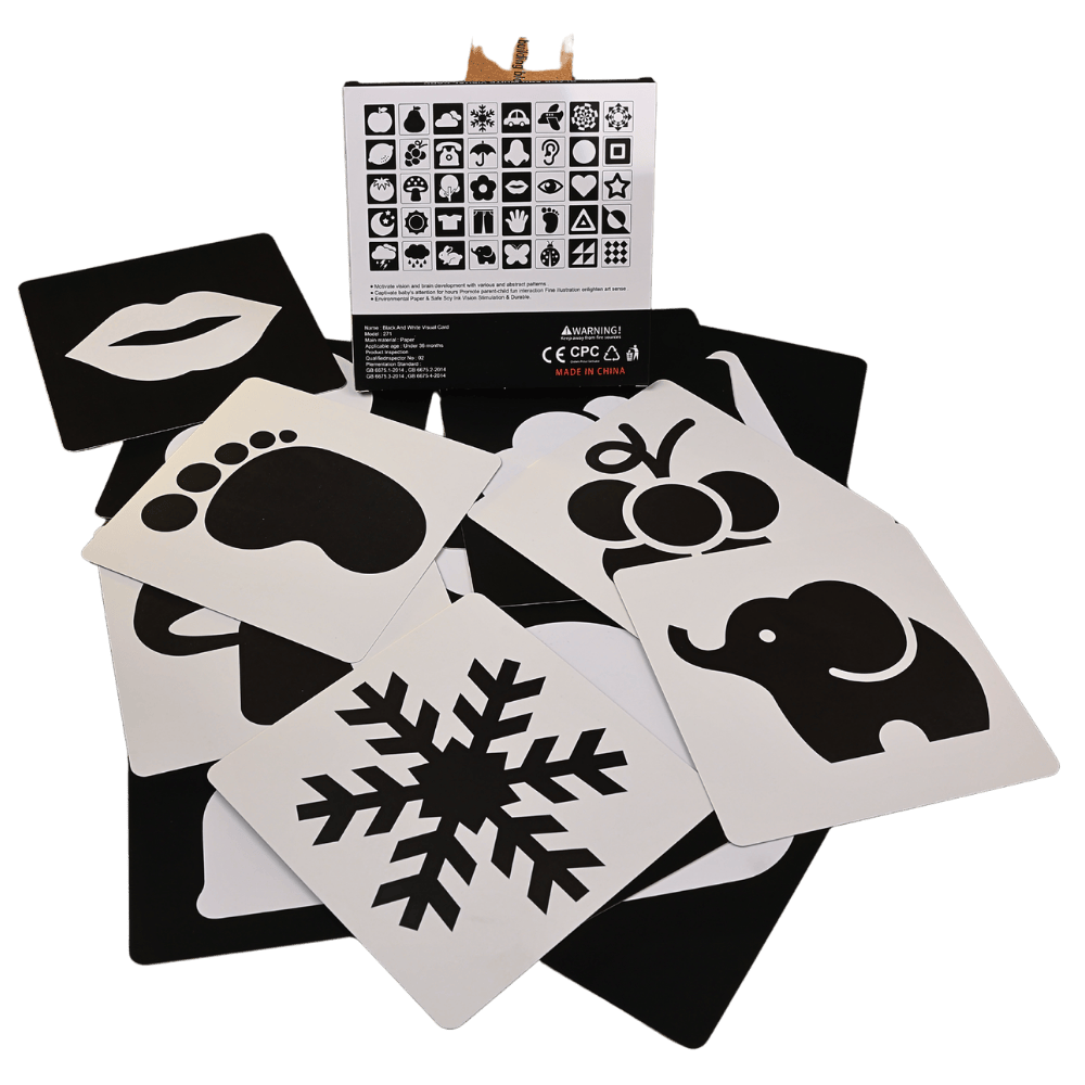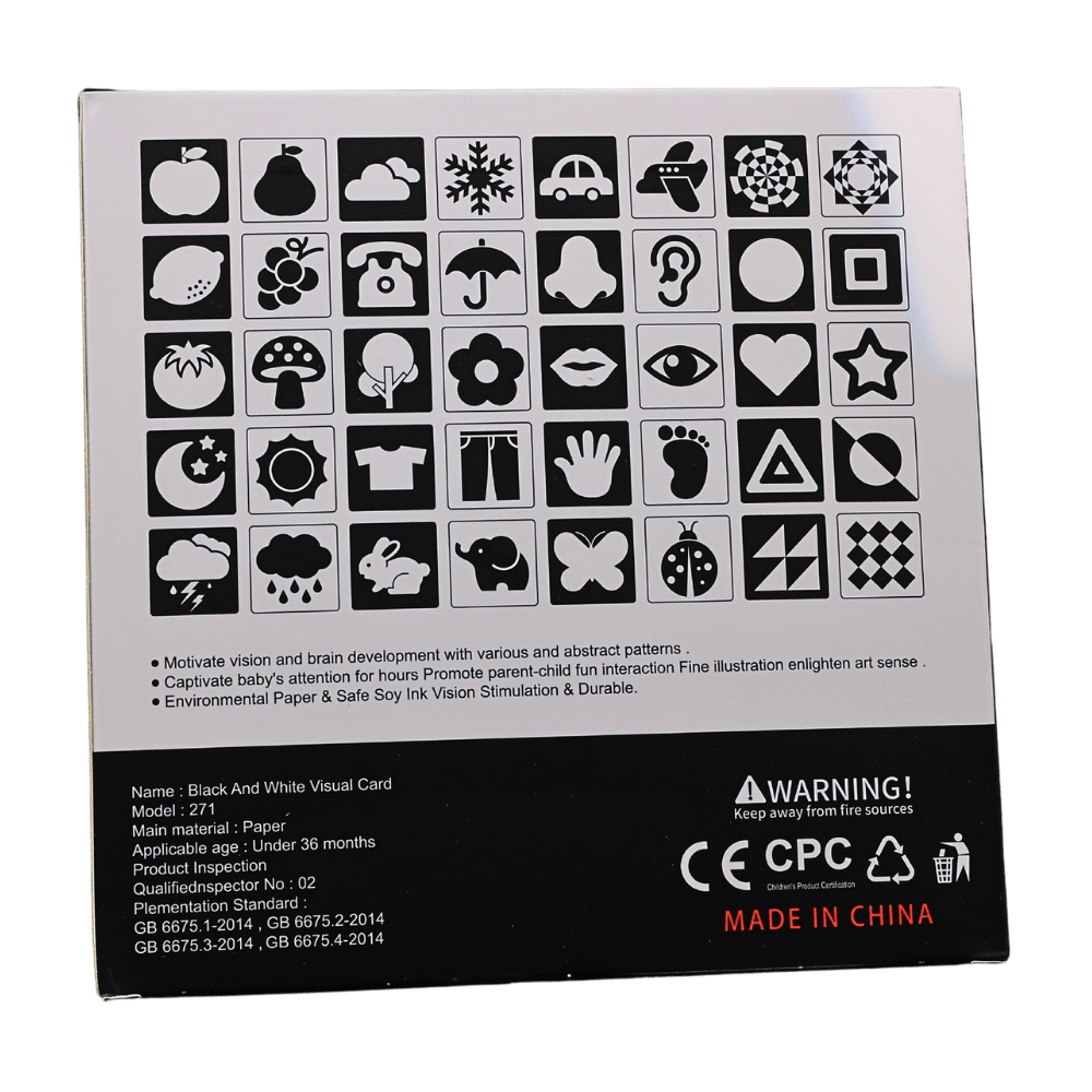 • High contrast black and white cards tailored for newborn vision development