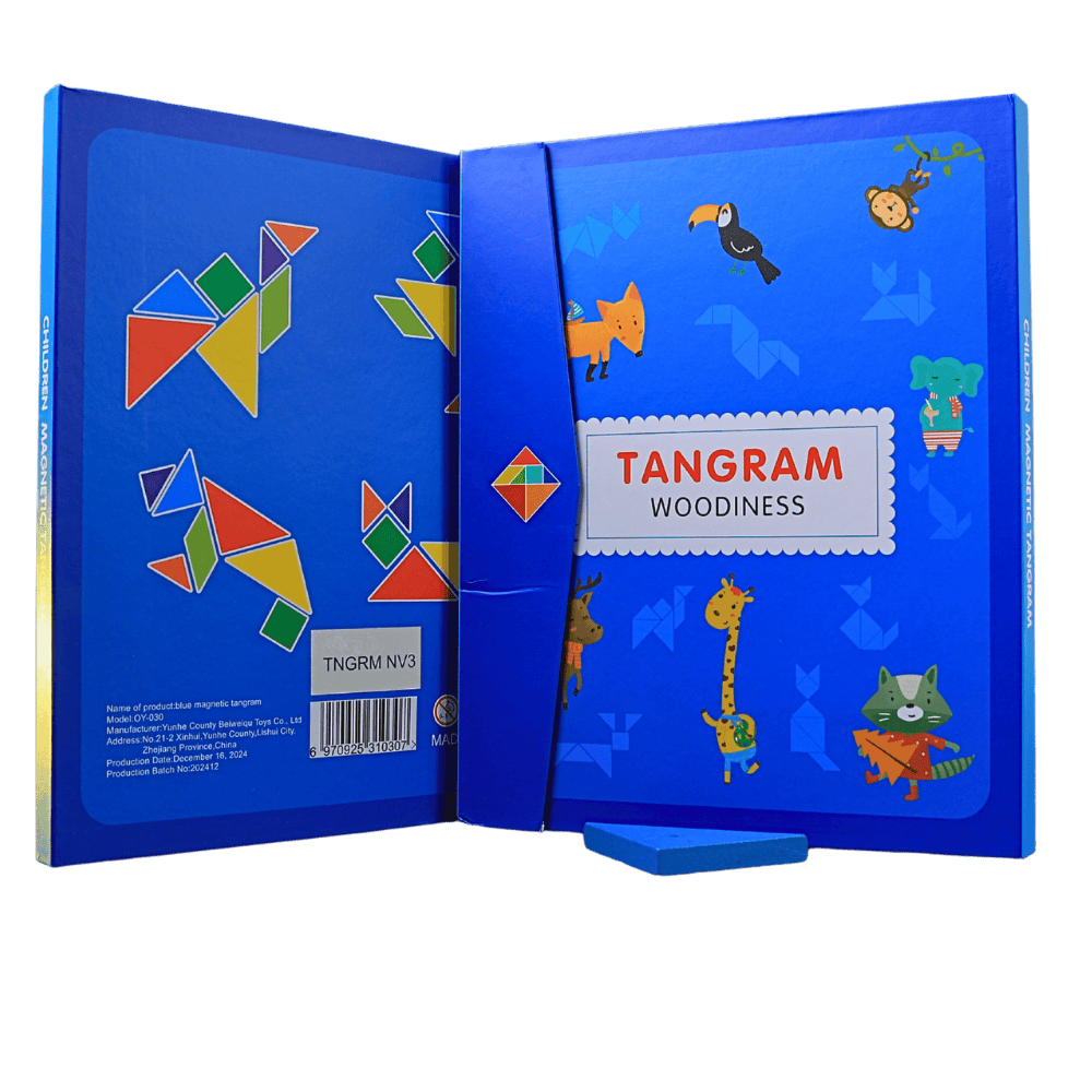 The noiiet Magnetic Tangram Book offers a smart, contained solution. Children use magnetic geometric pieces to recreate shapes shown in the book or invent their own designs. The magnetic surface keeps pieces in place, reducing frustration and making it ideal for travel, waiting time, or calm indoor play.