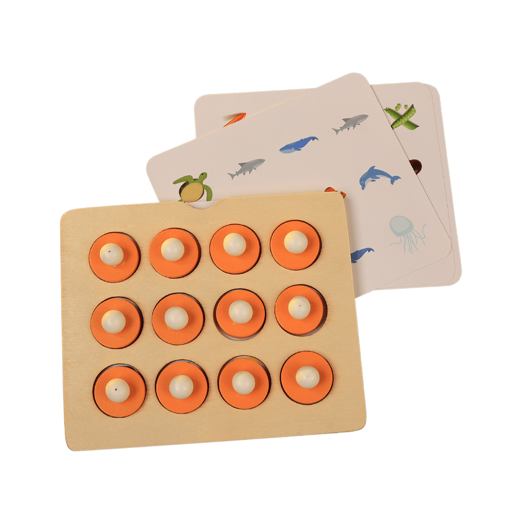 A compact wooden memory matching game that builds memory, focus and cognitive skills through fun, screen-free play.