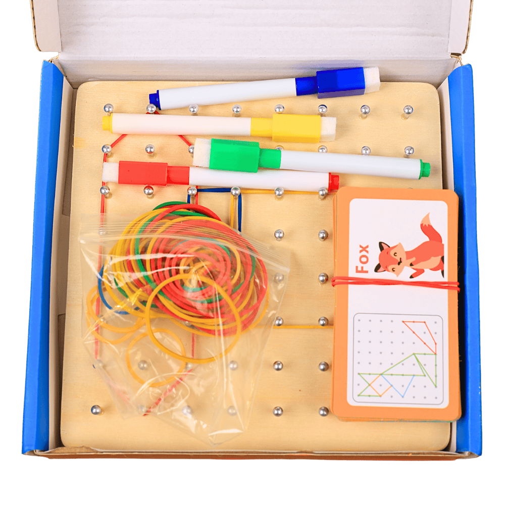 The noiiet Nail Drawing Board offers a fun and effective solution. With this board, children use colored rubber bands and nails to trace outlines, draw shapes, or form pictures. This activity strengthens finger control, hand-eye coordination, spatial awareness and creative thinking. The board’s speciality lies in combining artistic expression with motor skill development, making it useful for both cognitive growth and creative play.