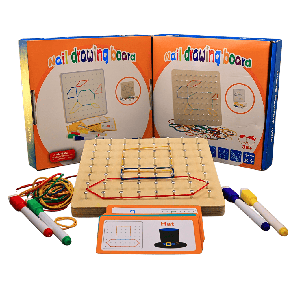 A creative nail drawing board that builds fine motor skills, creativity and pattern recognition through hands-on, screen-free play.