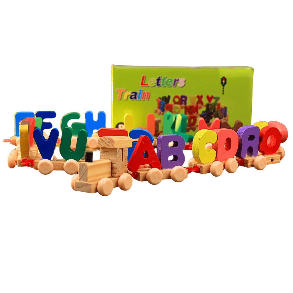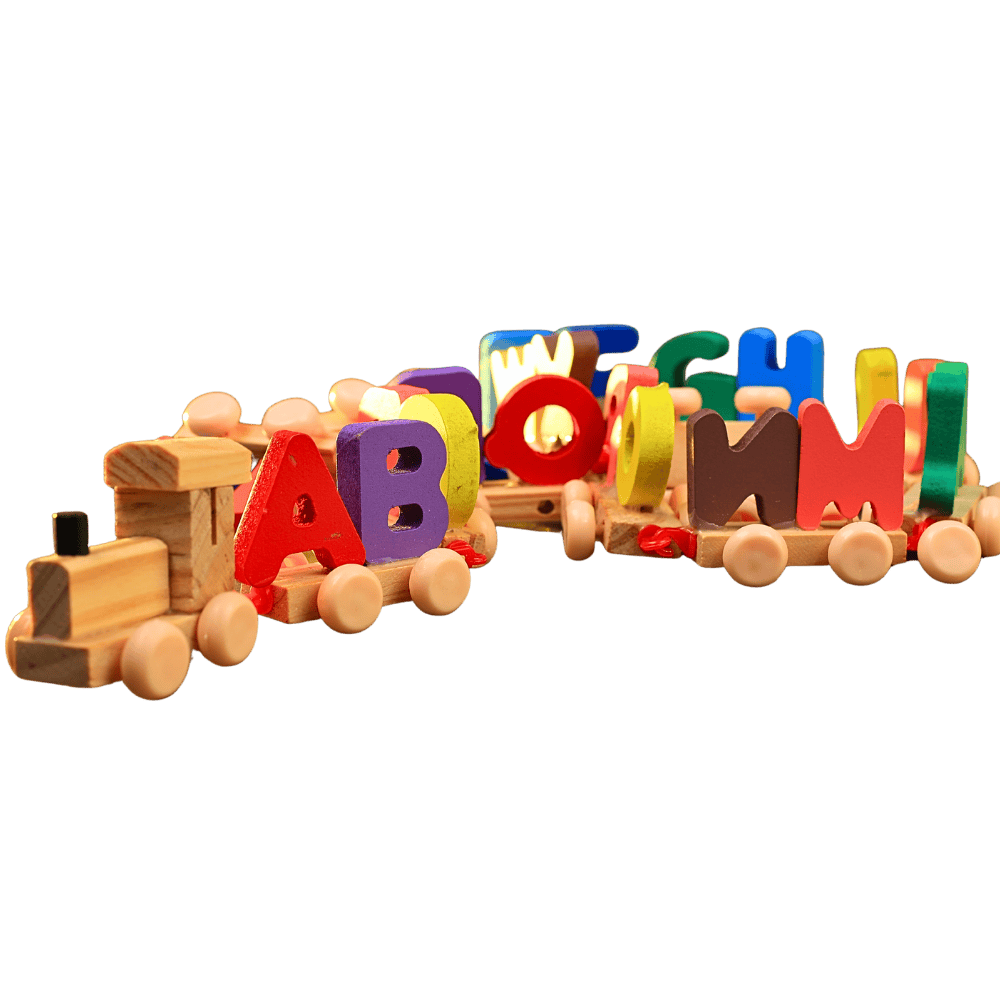 An alphabet train toy that helps kids learn letters, improve coordination and enjoy screen-free creative play
