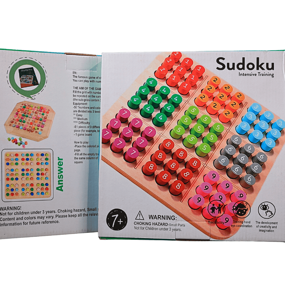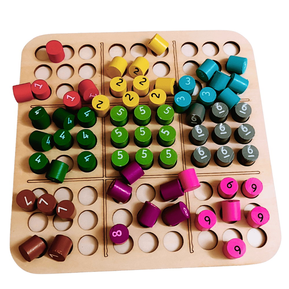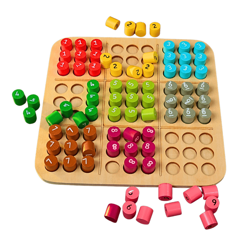 • Colourful wooden Sudoku board with well-crafted slots and pieces